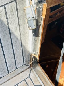 Nach dem Ankern erstmal die Tür reparieren. Natürlich nach MacGyver-Manier.