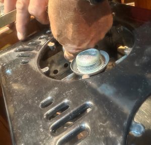 ok, trotzdem den Fehler gemacht, da könnte ich mal kurz in der Bilge (den Keller – der Bereich zwischen Bodenbrettern und Schiffsrumpf) nachsehen, da hab ich noch eine Aluplatte, dass beim Brot backen die Hitze besser verteilt wird.
