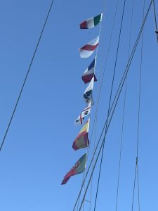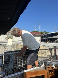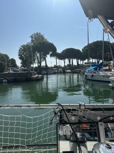 Gestern Abend hatten wir, nach einem leckeren Abendessen in Lerici, keine Lust mehr, noch das Dinghy und den schweren Motor an Bord zu heben. Also, heute Früh, ganz früh, Motor am Flaschenzug an‘s Heck und Dinghy mit einem Fall und der Winsch am Bug an Bord gezogen.