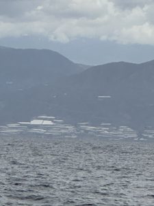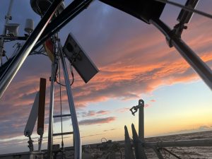 Um sieben wird‘s hell und wir sind nach knapp 24 Stunden noch gar nicht mal so weit. Jörg geht es immer schlechter. Er macht zwar zwischendurch mal Ruderwache, aber muss immer wieder innen liegen, Augen zu.