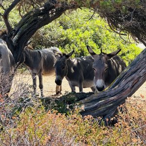 An der Insel Asinara haben wir für sechs Tage eine Ankerboje gemietet. Sonst darf man im Naturschutz Gebiet nicht bleiben. Ein zauberhaftes Plätzchen, erst Quarantäne Insel für Sardinien, dann Kriegsgefangenen Lager, dann Gefängnis Insel für die ganz schweren Jungs. Durch diese langjährige „einseitige“ Nutzung, konnte sich Pflanzen- und Tierwelt in beachtlicher Artenvielfalt erhalten. Nun ist die Insel Naturreservat. Man darf die Insel besuchen, die Sommerferien starten gerade, aber nur eine Fähre pro Tag bring Besucher. Der Preis für die Bojen hält unter den Seglern und Motorbooten die Massen fern. Außer Natur gibt es kaum was zu sehen, wandern Fahrrad fahren, kaum mehr ist im Angebot, wie gut.