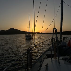 Im Norden Sardinens ist, unterbrochen von der Fonelli Passage die Insel Asinara. Da war unser nächstes Ziel. Mal wieder war Mistral aus dem Golf von Lyon angesagt. Da wollten wir unterkriechen. 38 Seemeilen. Angekündigt war Rückenwind, Jörg hatte schon ein Jucken in den Fingern, mal wieder den Parasailor auszupacken. Die Küstenlinie, mit vielen kleinen Kaps, hat den Wind in Stärke und Richtung allerdings so beeinflusst, dass der Parasailor im Sack blieb.