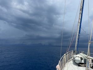 Als das Gewitter losbricht, sind wir ca. 1 Seemeilen von der Stelle entfernt.