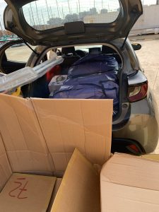 Wir dahin, mit einem Raumwunder an Mietwagen „Toyota Yaris“. Als Lieferwagen also eher begrenzt geeignet. Dem gegenüber 1m3 Paletteninhalt, zuzüglich Leerpalette und Verpackungsmaterial.