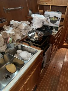 Alles, was auf’s Boot soll, muss auch irgendwie nach Portugal kommen. Im November haben wir einen letzten Besuch vor dem Winter eingeplant. Zwischendurch wurde noch ein Beiboot, inklusive Außenbordmotor angeschafft. Wie kommt nun alles hin? Es schien gut durchdacht zu sein. Wir packten 14 Tage vor unserer Reise eine Europalette. Schlauchboot, Motor, Geschirr, Besteck, Bettzeug, etc. und schicken alles per Spedition zur Marina. Blöd nur, dass Marina und Marina zwei Orte sind, die 3 Kilometer voneinander entfernt sind. Die Kebulan steht im Boatyard, die Palette wird zum Yachthafen geliefert.